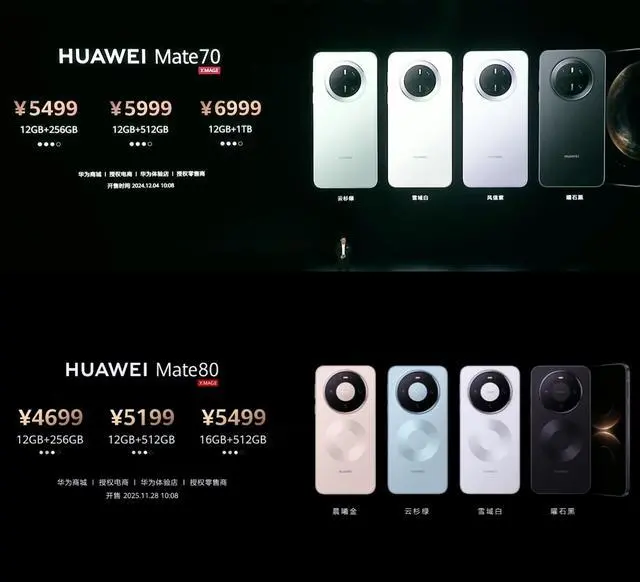 相比之下,华为Pura 80系列相较上代大幅降价,标准版降价幅度超过800元,Pro和Ultra版价格维持不变。华为Mate 80系列同样相比上代大幅降价,标准版降价幅度超过800元,Pro版降价500元左右,RS非凡大师版虽然价格不变,但内存规格却从16GB增加到20GB,玩了一手“加量不加价”。