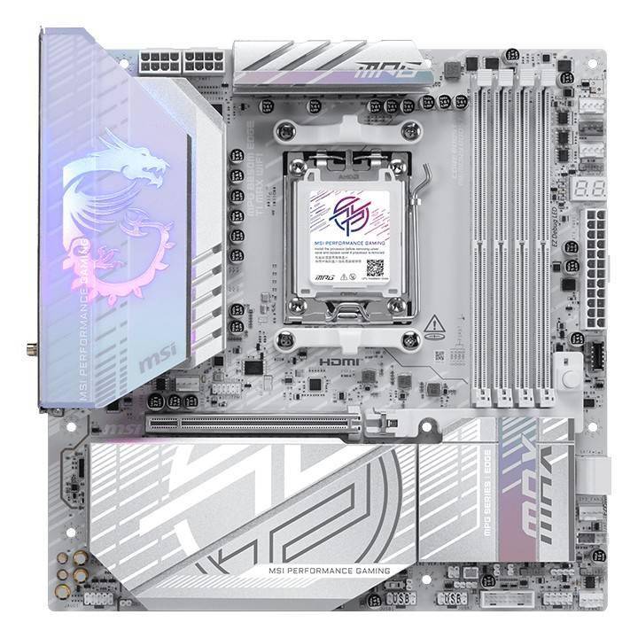 IT之家 1 月 23 日消息,此前曝光的微星 MPG B850M EDGE TI MAX WIFI 高阶 M-ATX 主板现已正式上市,采用银白色配色方案,首发 1599 元,可能会是微星定位最高的一款 AMD 800 系 M-ATX 主板。 该主板采用 8 层服务器级 2oz 铜 PCB、14+2+1 相供电(其中核心供电采用 80A SPS),拥有扩展型 VRM 散热片并配备 1W/m·K 导热垫,具备 OC Engine 芯片和 64MB BIOS Flash 存储芯片。 另外,这款主板提供了显卡快拆设计、数字侦错灯、Clear CMOS 按钮、EZ Wi-Fi 天线模块等 DIY 优化功能。 扩展性能方面,微星提供了 1 条 PCIe 5.0 插槽、4 个 M.2 盘位,支持 5GbE 有线网络和 Wi-Fi 7 (320MHz) 无线网络,IT之家附完整规格如下: - 内存: