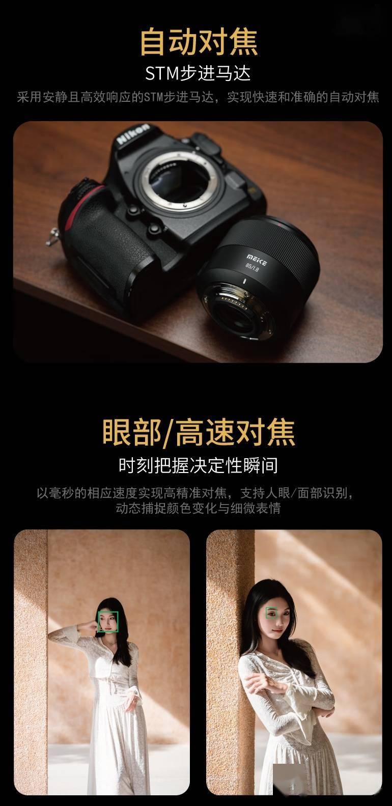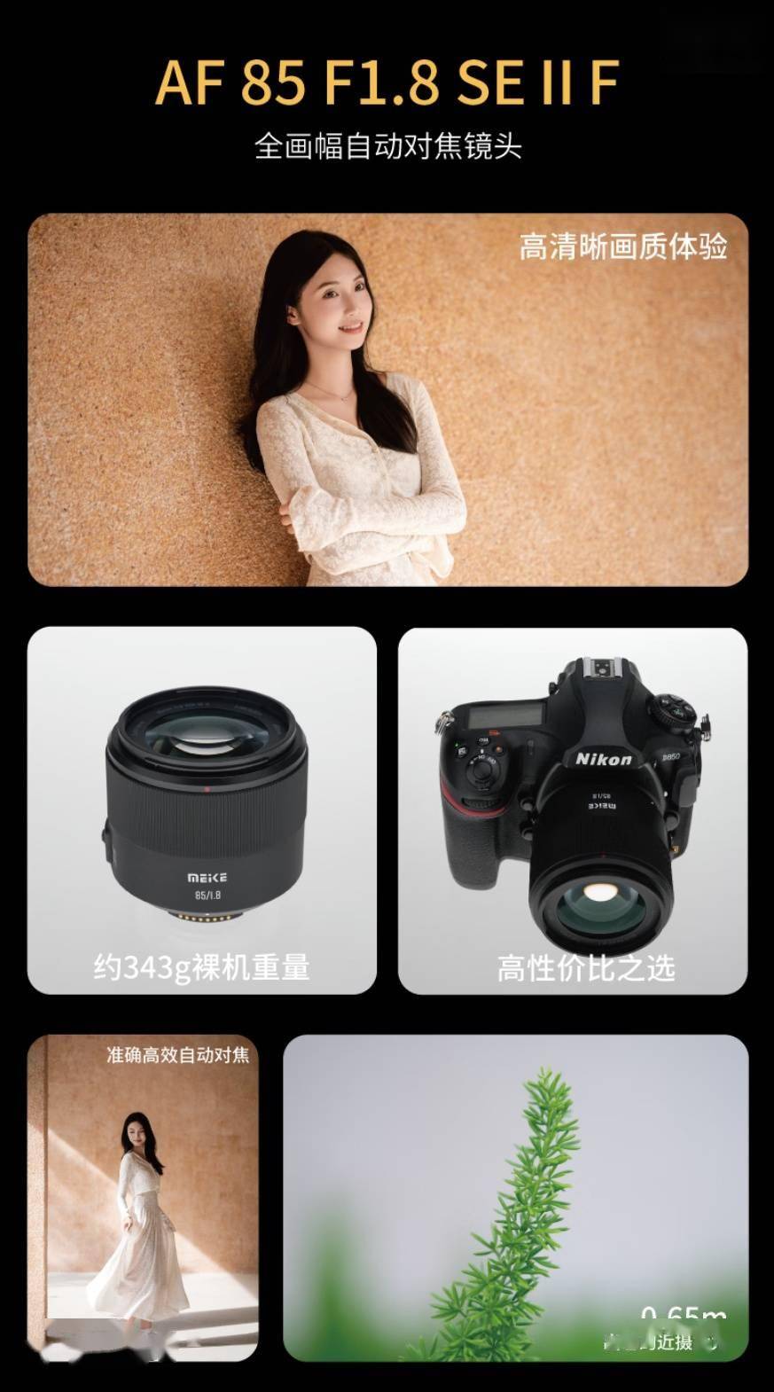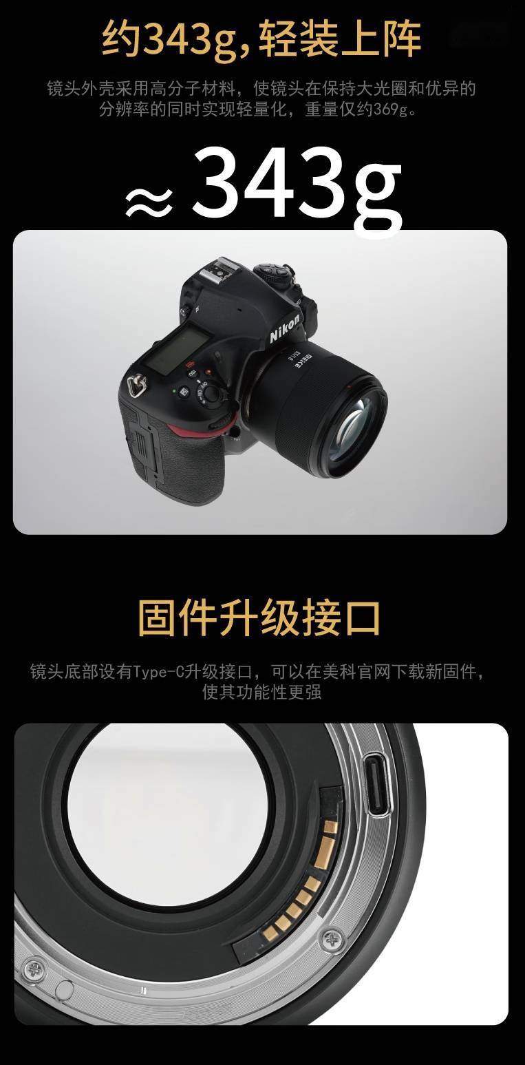 IT之家 1 月 24 日消息,美科 AF 85mm f/1.8 SE II 全画幅镜头尼康 F 卡口版现已开售,新品主打人像摄影,售价 1099 元。 据介绍,这款镜头采用 7 组 11 片镜片的光学设计,号称“高清分辨率”,85mm 的焦段可提供较少变形透视和空间感,适合拍摄面部特写、人物全身像,最近对焦距离为 0.65m,能够拍摄到更多物体细节。 规格方面,这款镜头搭载 STM 步进马达,支持眼部 / 脸部高速对焦,拥有 11 片光圈叶片,可拍出更圆的焦外光斑,镜身外壳采用“高分子材料”(塑料),重量约 343g,镜头卡口处还带有 USB-C 接口,可用于升级固件。 IT之家附该镜头详细参数如下: 目前这款镜头已在京东开售,售价 1099 元。