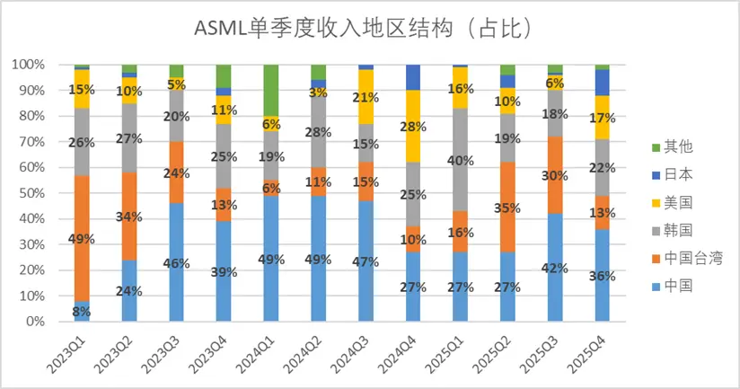 图:ASML单季度收入地区结构,来源:企业财报,锦缎研究院整理