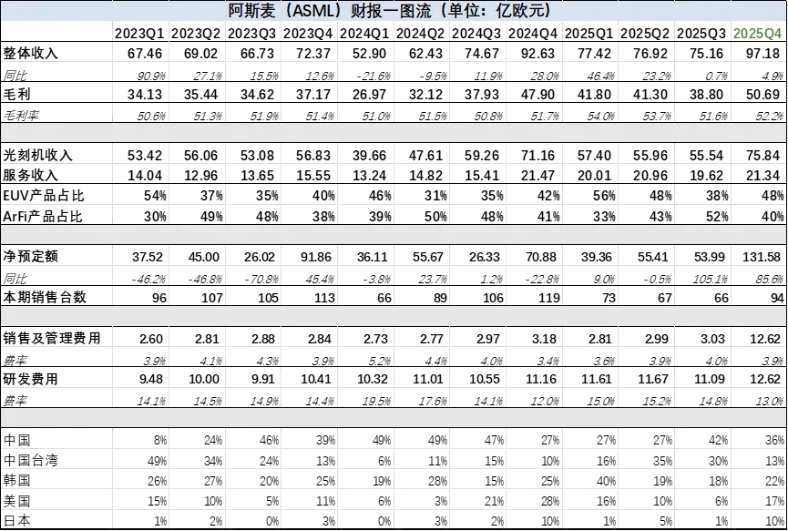 图:ASML财报汇总,来源:企业财报,锦缎整理