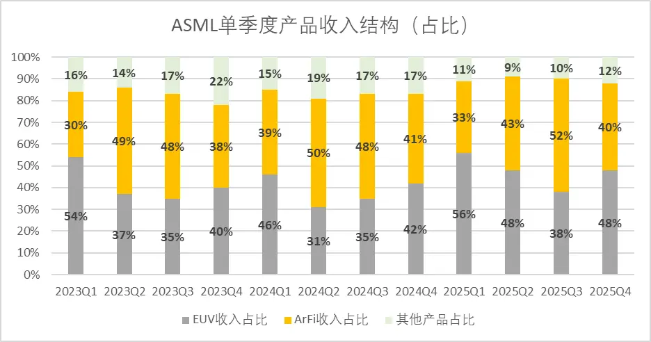 图:ASML单季度产品收入结构趋势,来源:企业财报,锦缎研究院整理