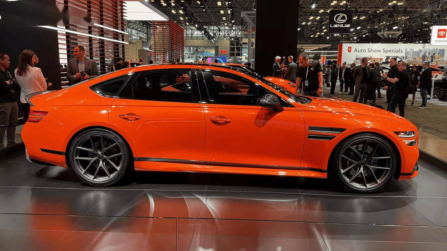 汽车媒体 CarScoops 昨日(1 月 30 日)发布博文,报道称在阿联酋举办的品牌活动中,捷尼赛思(Genesis)确认量产 G80 Magma 高性能轿车,该车仅限量发售 20 台且专供中东市场。 捷尼赛思 G80 Magma 对标宝马 M5 和梅赛德斯-AMG E63 等德系高性能轿车,搭载品牌旗舰级的 3.5 升双涡轮增压 V6 发动机,经过特殊调校后,最大功率达到 525 马力(hp),比普通版 G80 足足提升了 150 马力。 底盘方面,新车为提升过弯支撑性,采用了更低、更硬的悬挂设置,动力通过 8 速自动变速箱传递至全轮驱动系统(AWD),换装了高性能 Brembo 制动系统,外媒预计其换挡逻辑与扭矩分配将更加激进。 外观方面,车头部分换装了全新设计的保险杠,配合熏黑处理的进气格栅与通风口,车尾则配备了更加突出的扩散器、鸭尾扰流板以及全新的排气尾管。 内饰方面,前排换装了 Recaro 赛车座椅,采用黑色真皮与 Alcantara 材质拼接,椅背采用亮橙色涂装,并辅以橙白撞色缝线。 IT之家附上原文中相关图片如下: