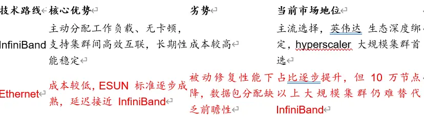 ●此外,UALink、Ultra Ethernet 等开放标准正在崛起,有望打破英伟达对互联的垄断。据测算,在10万节点集群中,Ethernet架构相较英伟达InfiniBand,总拥有成本TCO最高可节省20%。