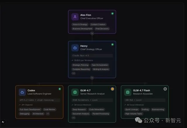 目前,Alex有2名员工在岗(本地部署在Mac Studio上),2名员工外包(Opus 4.6与Codex 5.3)。那2名本地员工全天候为他工作。