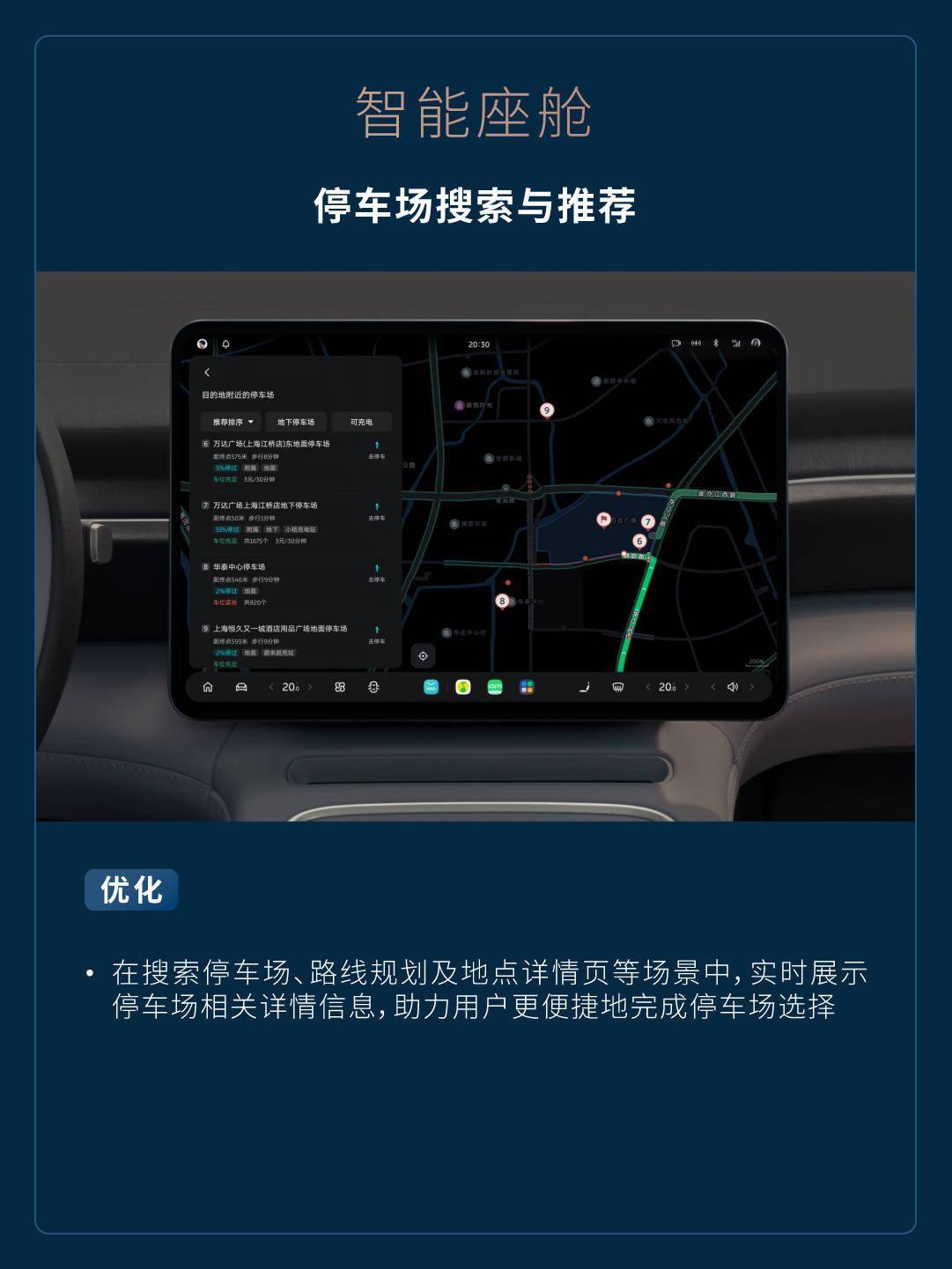 停车场搜索与推荐 - 在搜索停车场、路线规划及地点详情页等场景中,实时展示停车场相关详情信息,助力用户更便捷地完成停车场选择。