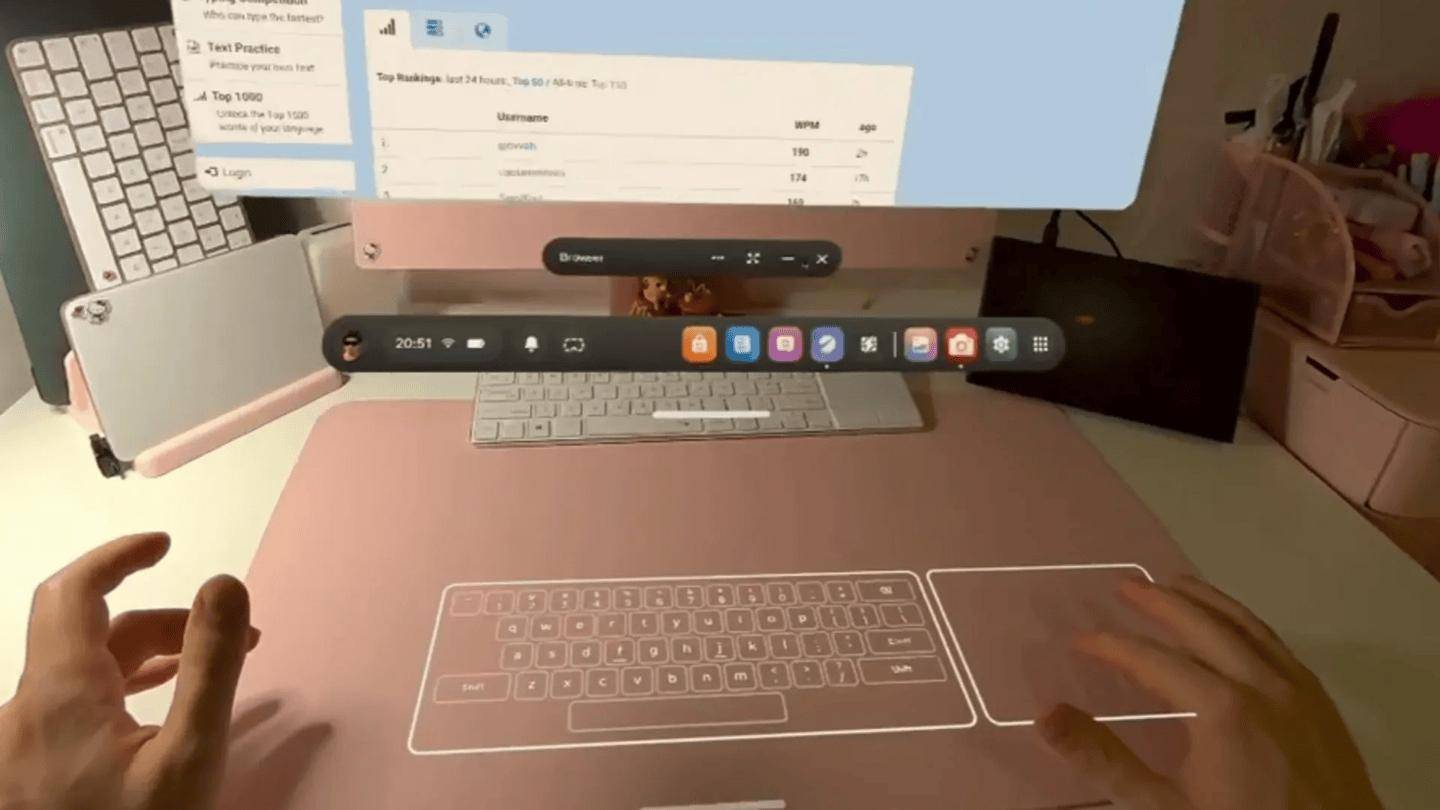 Meta 近日为旗下 Quest 头显推送了 v85 测试系统(PTC)更新,为 Quest 3 带来了一项“Surface Keyboard(桌面键盘)”测试功能,允许用户在任意平整表面上进行打字操作。 据介绍,此前用户在 Quest 上输入文字主要依靠三种方式:使用悬浮虚拟键盘、连接可被头显追踪的实体键盘,或通过语音转文字输入。而如今 Meta 为 Quest 3 推出的这项“Surface Keyboard”功能允许头显在桌面上叠加虚拟键盘触控板,整体操作体验类似于前几年网红产品“投影键盘”。 ▲ Surface Keyboard 功能 ▲ 前几年的网红“投影键盘”,Quest 3 的这套虚拟键盘本质体验相同 Meta 表示,“Surface Keyboard”功能适合“轻度生产力场景、网页浏览、消息沟通以及 2D 应用使用”。配套的虚拟触控板则支持食指移动光标、点击(轻点)、拖拽(双击并移动)以及用食指和中指进行双指滚动。不过,Meta 也强调,如果需要大量文字输入,仍然更建议使用实体键盘。 IT之家获悉,已经加入 PTC 测试频道的 Quest 3 用户,可以在“设置”中的“实验功能”页面手动开启这项新特性。如果尚未加入 PTC,需要先通过手机端 Meta Quest 应用申请加入公共测试频道;若开关无法启用,则说明当前测试名额已满。