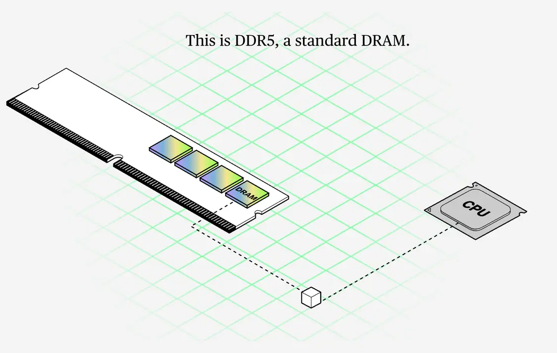 AI的兴起催生了DRAM芯片的全新封装方式:高带宽内存(HBM)。该技术通过垂直堆叠多层内存颗粒(即存储数据的独立硅片),并将其紧邻处理器放置,相较传统内存可大幅提升数据传输速度。