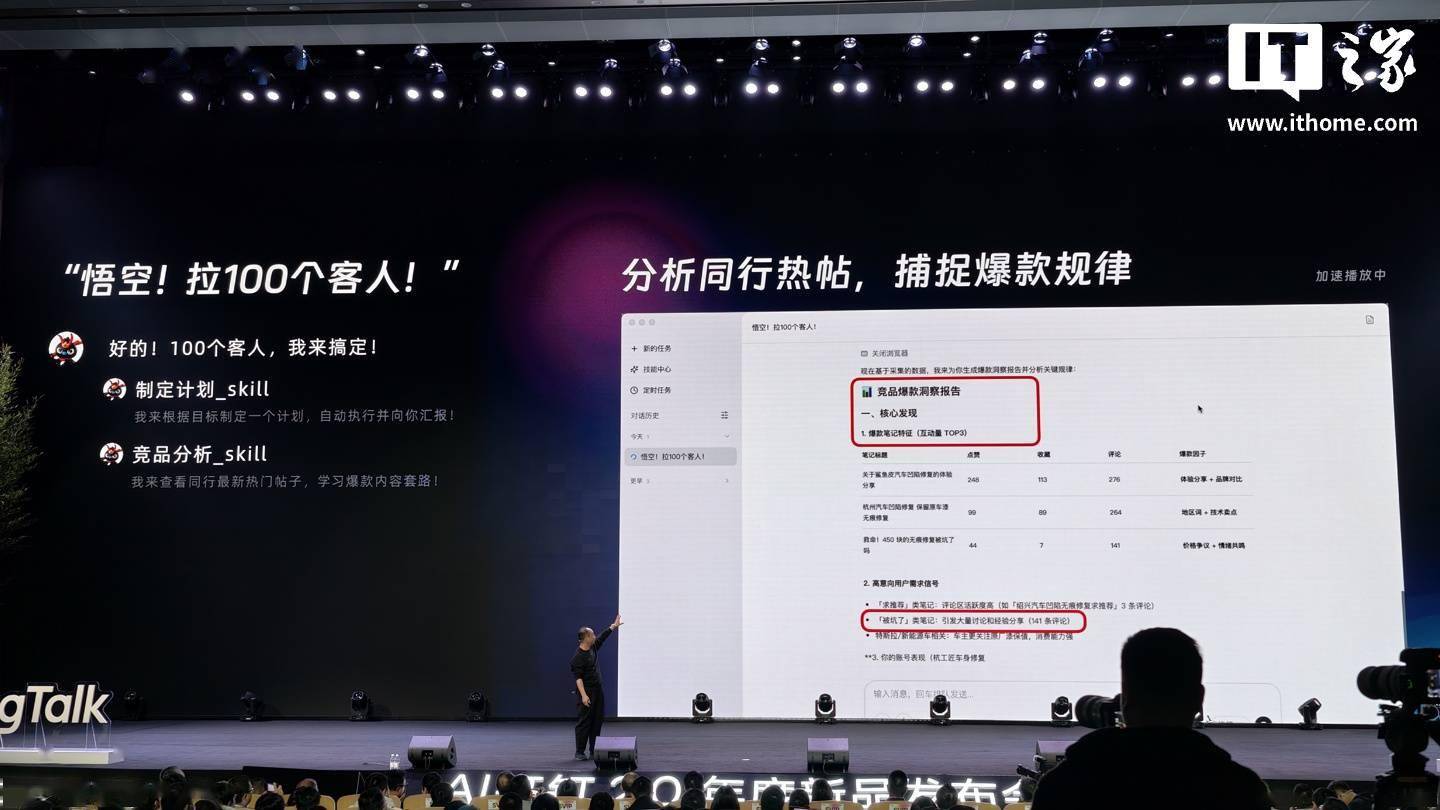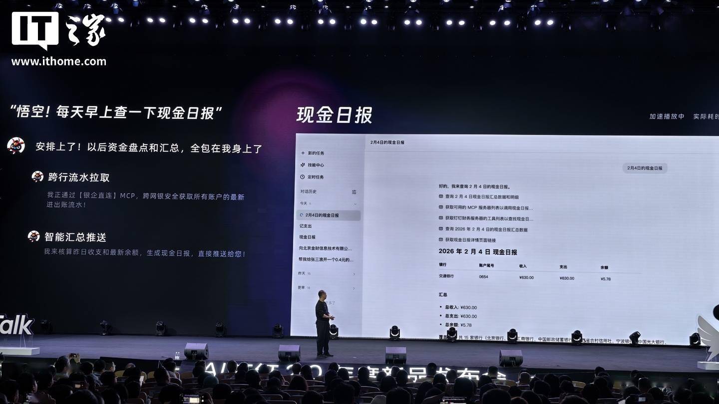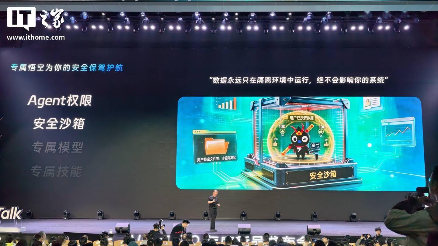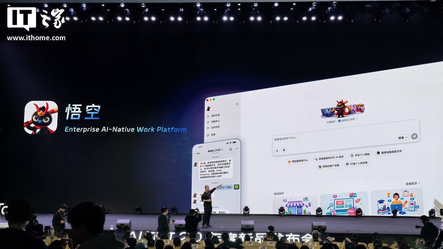 IT之家 3 月 17 日消息,在目前正在进行的 2026 AI 钉钉 2.0 年度新品发布会中,钉钉发布了全新 AI 原生工作平台“悟空”。 据介绍,该平台由任务推理引擎、记忆功能、AI 工作空间、执行工具构成,整合了钉钉旗下多款原生 AI 产品,同时其具备专属安全沙箱,可防止员工因配置 OpenClaw 导致设备数据泄露、遭恶意钓鱼代码入侵的问题。 具体功能方面,“悟空”平台可为商业用户提供一系列计划方案 / 应用开发能力,例如用户要求悟空“拉新 100 个客人”,该平台便会自动制定计划、分析同行热帖捕捉爆款规律、自动发帖、自动回复,从而实现从需求沟通到应用开发一站式解决方案。 钉钉还介绍了“悟空”平台的 RealDoc AI 原生文件系统,该系统号称专为 AI 设计,使用 CLI 命令行构成,提供 10000+ 可用命令行指令,拥有“原子级文件操作”和高性能快照能力,便于企业存储管理、权限管理、审计管理等操作。