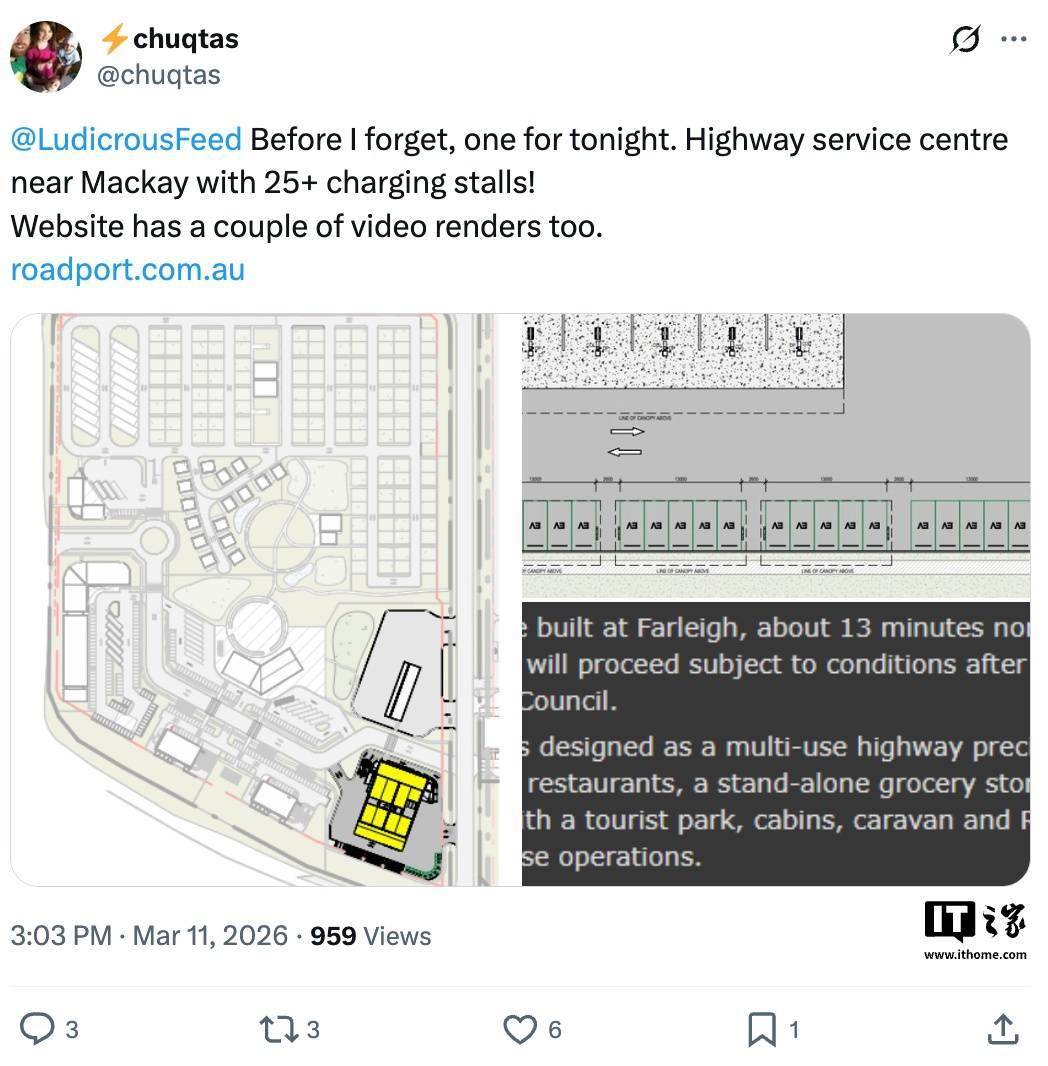 据外媒 Teslarati 报道,特斯拉正计划在澳洲兴建一座大型超级充电站,该充电站竣工后将超过目前位于新南威尔士州的 Goulburn 充电站(提供 20 个充电车位),成为特斯拉在澳洲的最大充电站。 据介绍,特斯拉拟为这座充电站提供超过 25 个充电车位,预计相应充电站还将引入特斯拉最新的 V4 超级充电桩,支持新款车型快速补充续航。 作为比较,目前特斯拉在澳洲运营 148 个活跃充电站,其中 80 个对非特斯拉品牌车型开放。 在销售方面,2025 年特斯拉在澳洲交付新车 28,856 辆,较 2024 年 38,347 辆下滑 24.8%,创下品牌历史最大年度降幅,同时也是连续第二年下降。不过当下特斯拉仍在澳洲电动汽车市场保持领导地位,约占 28% 的纯电动车市场份额。