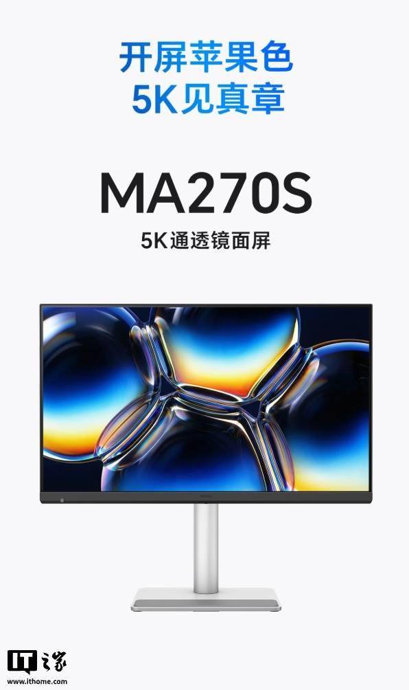 IT之家 3 月 18 日消息,明基昨天在京东上架“MA270S”27 英寸显示器国行版本,目前该机价格已揭晓,国行定价为 8499 元。 该机号称直接对标苹果 Studio Display,采用 5K 70Hz 规格,支持菊花链,同时配有光线传感器和双扬声器。 具体来看,该机配备一块 5120x2880 分辨率 70Hz 超频面板,显示器亮度 450 尼特,静态对比度 2000:1,GtG 响应速度 5ms,显示器支持 10-Bit 色彩,覆盖 99% DCI-P3 色域。 该机匹配双 3W 扬声器,显示器支架支持升降 / 倾斜 / 旋转,显示器本体带有光线传感器,同时提供了 1 个雷电 4 96W、1 个雷电 4 15W、1 个 USB-C 35W、1 个 USB-C 15W、2 个 HDMI 2.1、2 个 USB-A 3.2 Gen 2(KVM)接口。 IT之家附显示器参数如下: