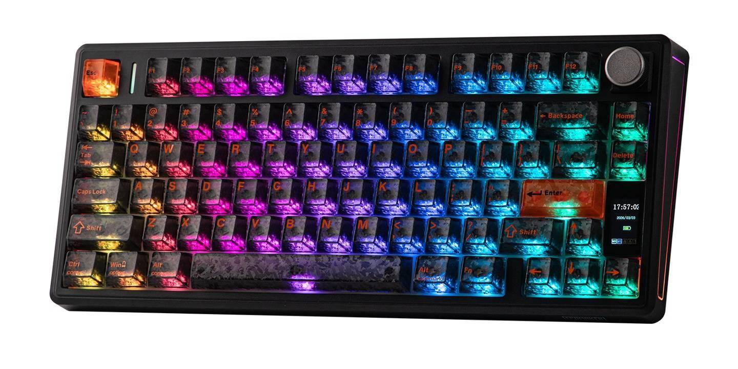 IT之家 3 月 23 日消息,EPOMAKER 现已面向国内市场发售 TH80 V2 系列三模机械键盘。其采用 75% ANSI 配列,右上角配备旋钮,PRO 款还在右侧中下部配备了 1.06 英寸的 TFT LCD 彩屏。 ▲ PRO 款锻碳黑 该键盘采用 ABS 塑料机身,前后高度分别为 18.5mm 和 32.5mm。其内部采用 Gasket 结构,配备 1.2mm 厚度 FR4 材质开槽 PCB,支持全键轴座式轴体热插拔、具备下灯位 ARGB LED 背光,同时还集成了横向开槽 PC 定位板和五层吸声阻尼。 ▲ 标准款白色 轴体方面,TH80 V2 系列可选云玉轴 (Creamy Jade Switch)、海盐静音轴 (Sea Salt Silent V2 Switch),均为线性手感。配套键帽为原厂高度。 IT之家在此附上 TH80 V2 标准款和 PRO 款的区别以及两种轴体的参数: 定价方面,EPOMAKER TH80 V2 标准款售价 349 元(云玉轴) / 369 元(海盐静音轴),PRO 款定价 389 元(云玉轴) / 399 元(海盐静音轴)。