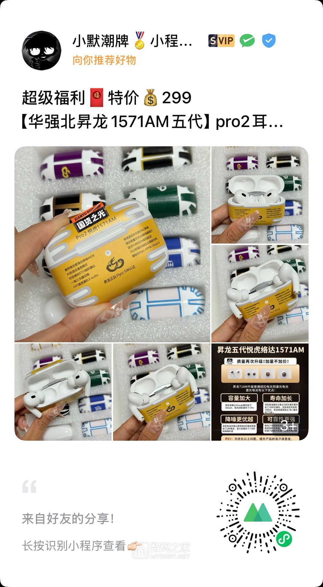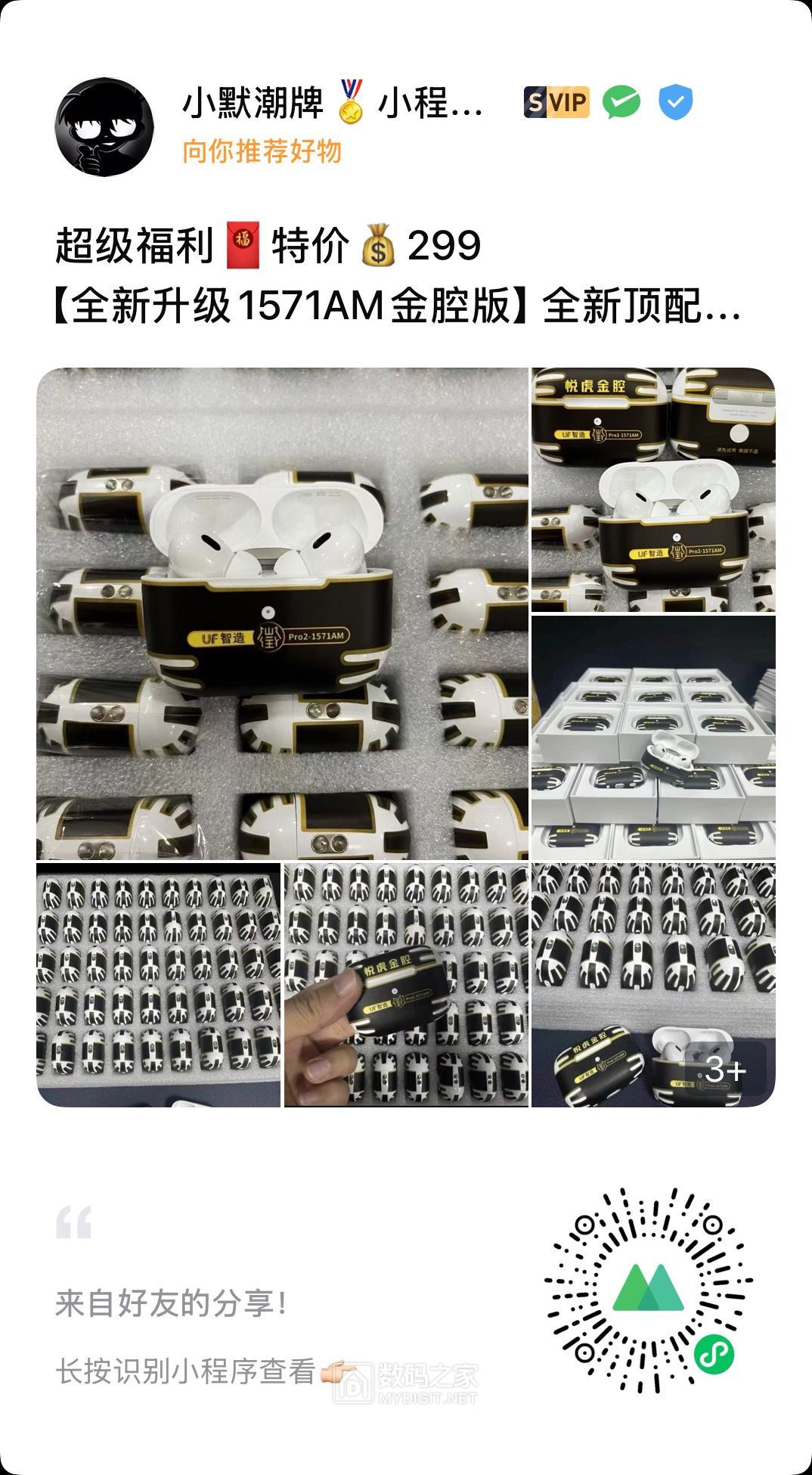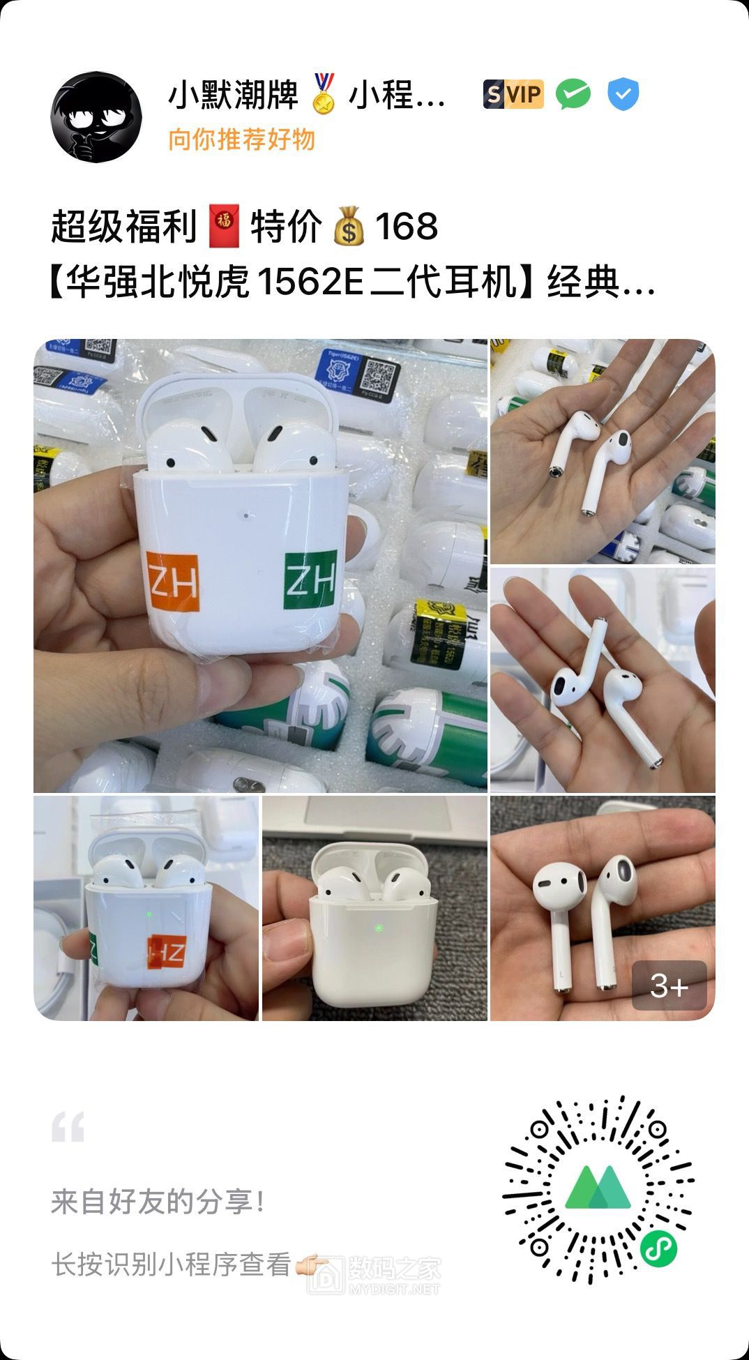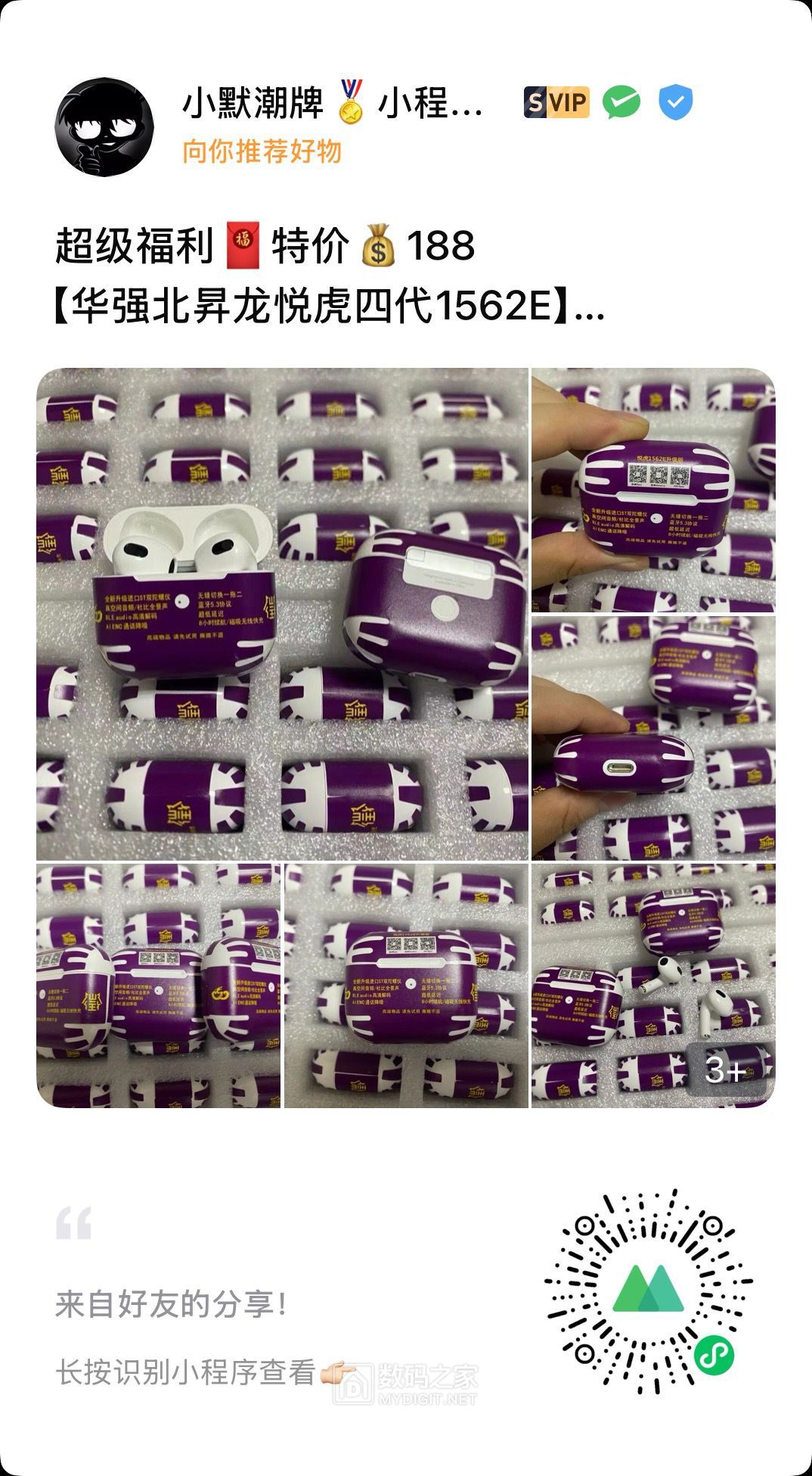 【前面好多个帖子都还有很多没吃完的M币 冲鸭!!!】 二代四代五代六代都是华强北顶配 支持检测!价格优势,对接工厂强势出货 售后质保90天 非人为质量问题只换不修(哪里坏了换哪里) 下单备注数码之家-10 送保护套 注意:壳料很贵 耳机有膜 撕膜不退 签收24小时内不喜欢退回 确认耳机要才撕膜 记得说明数码之家看到~~不然报价为正常报价~~只为赚点零花钱!! 不打价格战 坚持只做优质产品 靠的住的好产品 不与其他廉价货对比! 一分钱一分货,我们不做一次姓交易,一次性产品,诚信经营。我们希望每一单都能成为回头客 电子产品不可能十全十美,我们只能保证是同款里最好的,市面最高版本,过分挑剔请移步专.柜