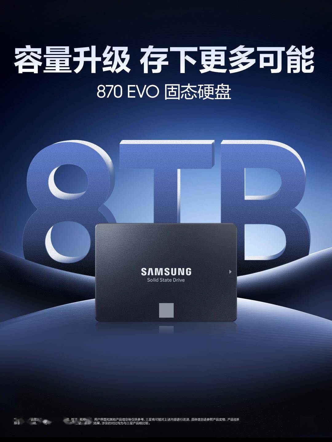 三星周二宣布推出 8TB 版本的 870 EVO 固态硬盘,目前京东显示为 12999 元。IT之家查询发现,同一链接在 3 月 20 日之前显示为 10999 元,不确定是否为同一商品。 三星 870 EVO 固态硬盘最初于 2021 年上市,顺序读取速度高达 560MB/s,顺序写入速度高达 530MB/s,最大随机读写则为 98000 IOPS 与 88000 IOPS。 得益于主控的升级,870 EVO 在 QD1 随机读取延迟上比 860 EVO 降低了 38%,同时受限于 SATA 6Gbps 接口,不同容量的实际性能表现基本一致。 除此之外,三星 870 EVO 采用三星自研 MKX 主控、第六代 128 层堆叠 3D TLC 闪存、 SATA3.0 接口,配备 8GB LPDDR4 独立缓存,提供五年 4800TBW 质保。