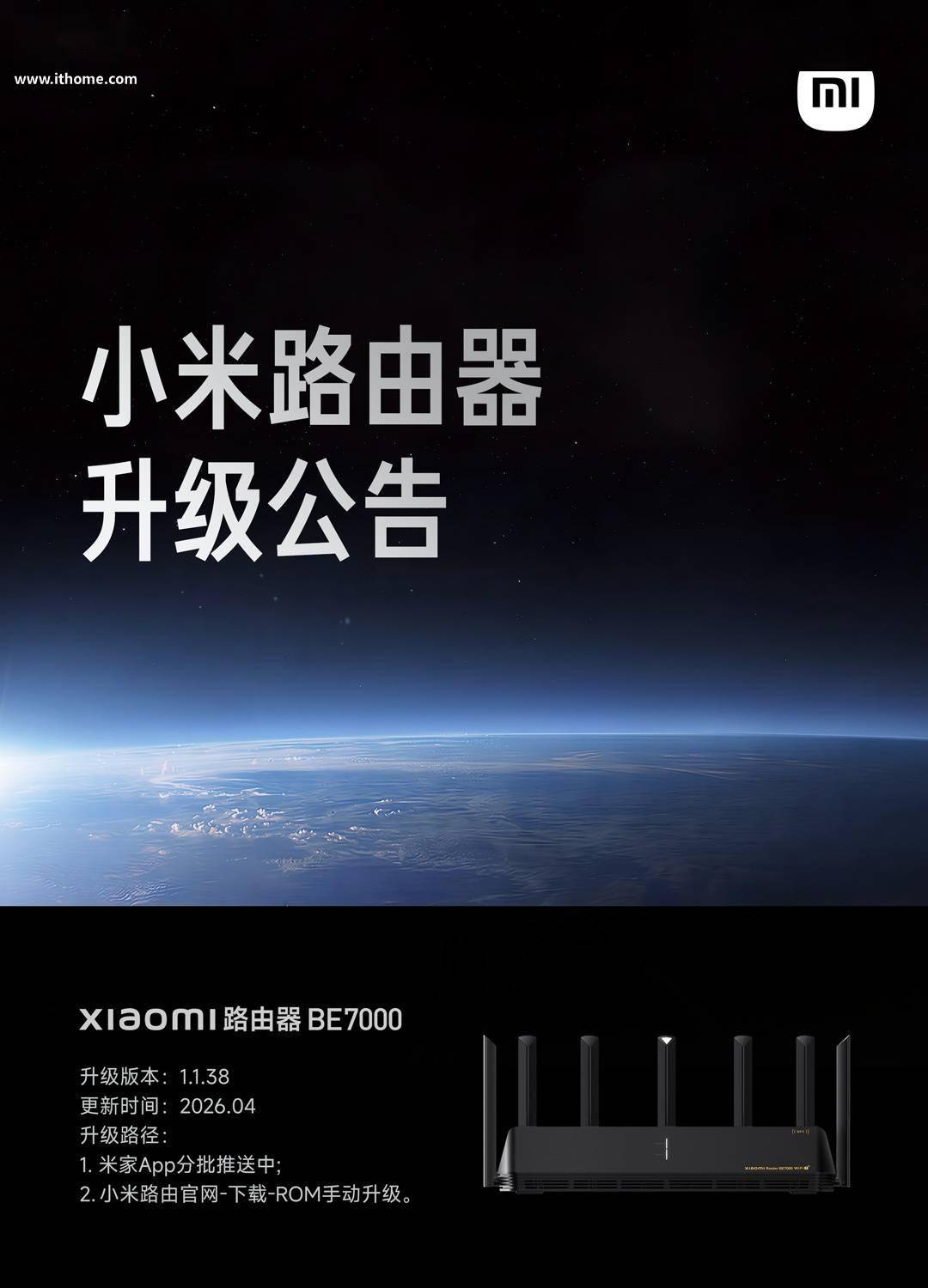 小米智能生态官方微博今日宣布,Xiaomi 路由器 BE7000 迎来 1.1.38 版本升级,修复了多项体验问题,并新增多项网络 / Mesh / 安全/ 米家 App 相关功能。 IT之家附小米路由器 BE7000 新版本更新内容如下: 功能优化新增- 专属网络功能,可供智能设备单独连接,且可配置为畅快连入网的第一选择。