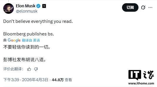 埃隆 · 马斯克常在其社交平台 X 上迅速驳斥任何涉及他本人或旗下公司的虚假信息。彭博社近期发布报道称 SpaceX 计划在未来几周启动首次公开募股(IPO),估值高达 2 万亿美元(IT之家注:现汇率约合 13.79 万亿元人民币),该消息被马斯克斥为“胡说八道”。 马斯克在 X 上迅速发声反驳,否认了有关 SpaceX 已秘密提交 IPO 申请、目标估值超 2 万亿美元的报道,并称该消息是“胡说八道”。 彭博社的报道称,SpaceX 将 IPO 目标估值提升至 2 万亿美元以上,称其有望成为史上规模最大的公开募股之一。 马斯克此前也曾多次澄清旗下公司的估值传言,强调市场猜测往往脱离实际情况。 早前有报道显示,SpaceX 已向美国证券交易委员会秘密提交 IPO 申请,有望创下上市纪录,甚至超越沙特阿美 2019 年的上市规模。 最初预估其估值或超 1.75 万亿美元,这一数据建立在 SpaceX 收购人工智能公司 xAI 后合并估值约 1.25 万亿美元的基础上。彭博社后续更新报道称,相关顾问向投资者透露的估值已超 2 万亿美元,此次募股或可融资 750 亿美元。 SpaceX 是一家实力雄厚的私营企业,其成就包括发射数千颗星链卫星提供全球宽带服务、实现猎鹰 9 号火箭可重复回收利用,致力于大幅降低发射成本,同时还怀揣着通过星舰实现火星殖民的宏伟目标。 该公司还获得了美国国家航空航天局(NASA)与国防部的政府合同支持。上市能让普通投资者有机会参与投资,但也会让 SpaceX 面临更严格的监管审查和季度财报披露压力。 质疑该报道的人士表示,IPO 申请属于机密信息,可核实的细节十分有限。马斯克此前也曾对虚高估值表态,曾称 SpaceX 8000 亿美元的估值“过高”。 支持马斯克观点的人认为,在当下人工智能热潮中,市场对大型 IPO 的过度炒作催生了不成熟的舆论导向,分散了人们对星舰完全可重复使用、星链星座扩容等核心技术里程碑的关注。 此次事件也反映出科技金融领域普遍存在的矛盾。估值报道中的匿名消息源会引发市场热议和投机行为,同时也存在传播虚假信息的风险。 SpaceX 最终是否会上市仍未可知。马斯克曾暗示会在星链业务成熟后推动其上市,但当前公司重心放在技术突破上,而非迎合华尔街的时间规划。
