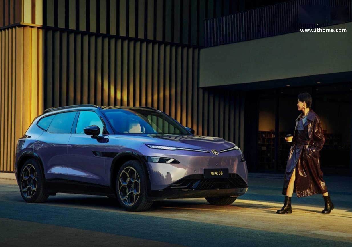 IT之家 4 月 7 日消息,大众汽车乘用车品牌中国 CEO 齐泽凯官宣大车与小车联合开发的首款车型“与众 08”将于 4 月 16 日上市,该车目前已开启预售,价格区间为 23.99 万元-29.99 万元。 该车整车姿态运动,前脸采用封闭式中网和细长的车头灯,梯形的下格栅动感十足;侧面呈现上扬气势,没有多余线条,并配有隐藏式门把手,整体看上去颇为“光滑”。 该车配备双 14.96 英寸超高清智能双联屏、1.74㎡智能调光天幕,标配小鹏汽车 VLA 全场景智能驾驶辅助系统,搭载高通 8295P 芯片,拥有同级领先的 1500TOPs 智驾算力,采用宁德时代电池,CLTC 续航最高超 700 公里,31 项安全碰撞测试优于国标。 规格方面,新车长 5000mm,宽 1954mm,高 1672mm,轴距 3030mm。搭载 800 伏高压超快充平台,单电机车型最大功率 230kW;双电机车型前电机最大功率 140kW,后电机最大功率 230kW,0-100km/h 加速时间 4.9 秒,最高车速 200km/h。 新车全系配备宁德时代磷酸铁锂电池,容量为 82kWh 与 95kWh,95kWh 版本 CLTC 工况续航最高可达 730km,支持峰值功率 315kW 的直流快充,5 分钟可补充续航 150km,10%-80% 充电时长约 20 分钟。
