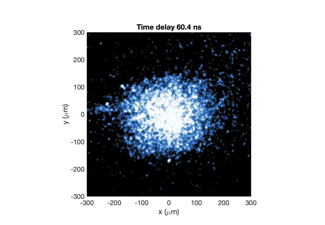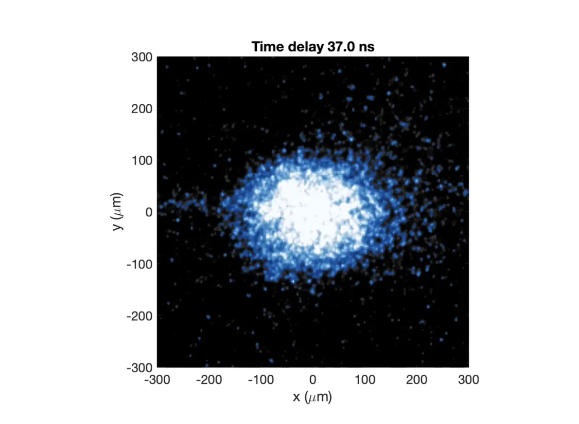 与此同步,将超音速氩气气体喷流注入针尖近场区。在强太赫兹电场作用下,气体被迅速电离为等离子体,并将电子和离子向外排开,中间形成一个球形空腔。而球壳表面则是被太赫兹波推动,形成一层致密高温的等离子体壳。球形腔内的光波辐射压与球壳表面的热压,随着球体膨胀达成了一种“精妙的力学平衡”,将太赫兹波囚禁在内,进而形成了类似自然界的球状闪电。