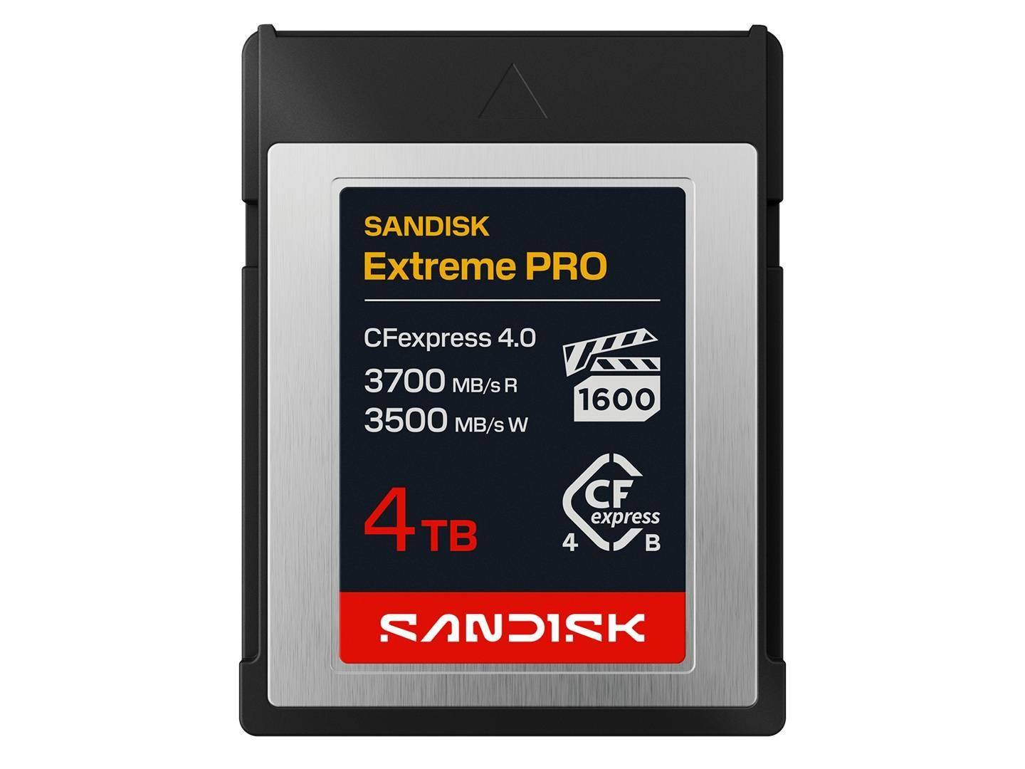 IT之家 4 月 20 日消息,Sandisk(闪迪)在 NAB 2026 展会上发布了一系列存储卡新品,而这其中最为突出的便是新一代 SANDISK Extreme PRO(至尊超极速)CFexpress 4.0 Type B 存储卡。 该系列存储卡提供 128GB / 256GB / 400GB / 1TB / 2TB / 4TB 六种可选容量规格,全系顺序读写速率至高达 3700MB/s 和 3500MB/s。 IT之家注意到,其中小容量型号获得 VPG-400 和 VPG-800 认证,1TB 及以上型号获得 VPG-1600 认证,可满足 12K 高速拍摄的需求。 闪迪还同步推出了容量可达 2TB 的 SANDISK Extreme PRO SDXC UHS-II 存储卡,包括 V90 和 V60 两种速度等级的版本。