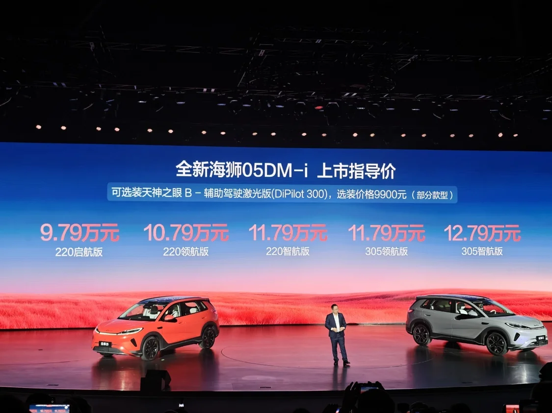 价格方面,海狮05 DM-i推出5款配置,指导价9.79万至12.79万元;海狮05 EV推出3款配置,指导价11.99万至14.59万元。
