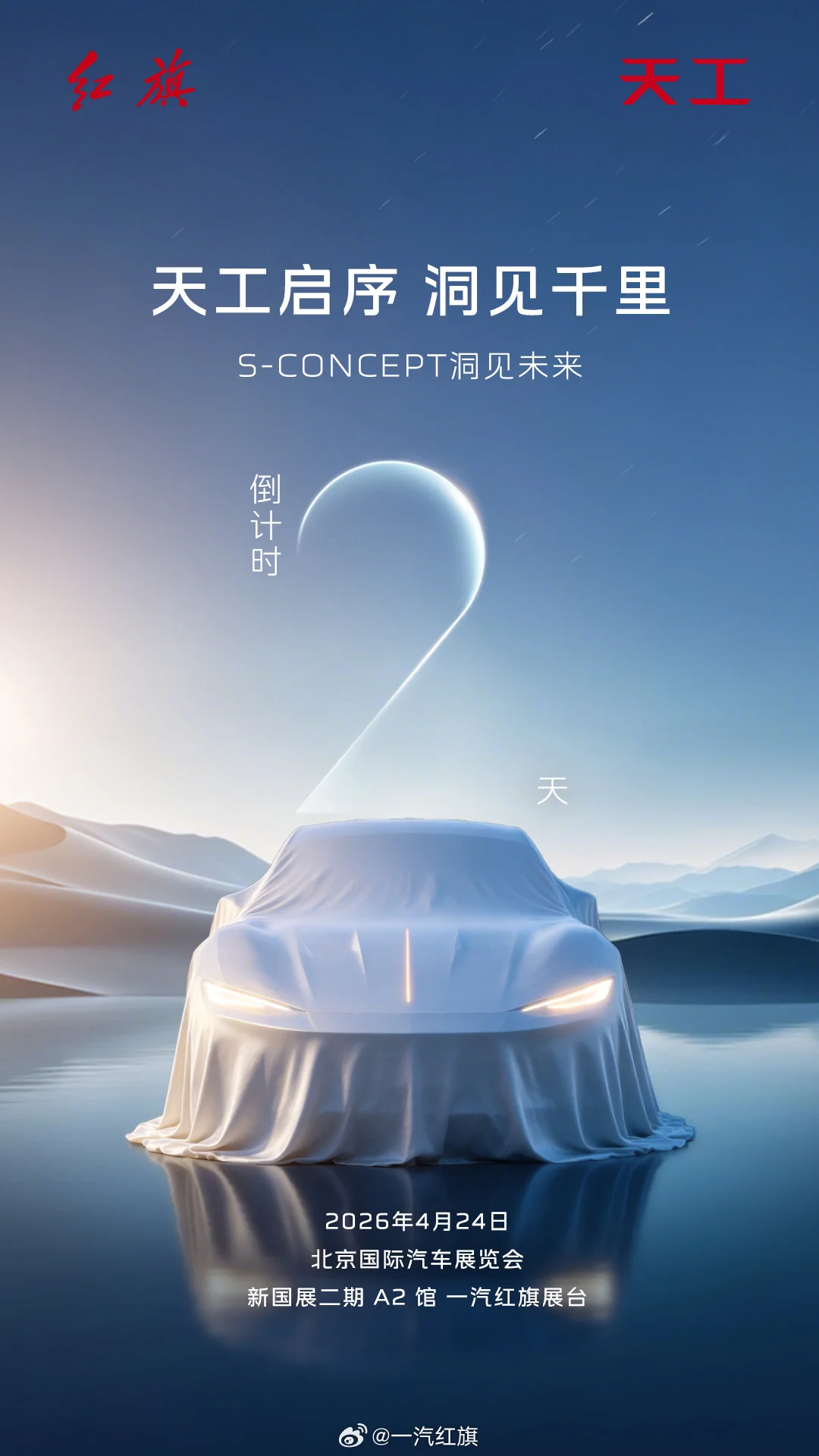 此外,全新一代红旗 H9、全新一代红旗 H7、红旗越野量产版、天工 S-concept 等车型也将在车展发布。