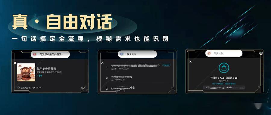 - 真自由对话:模糊需求也能理解,支持“中午没吃饭,给我点份餐吧”等自然表达,对话式修改订单;