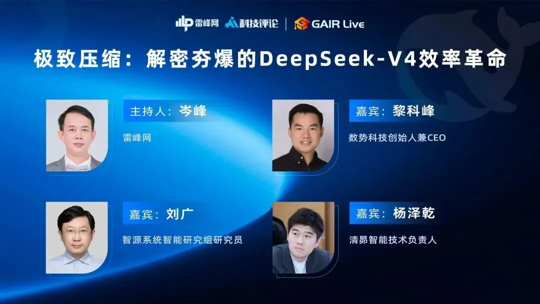 在Deepseek V4发布当天的GAIR Live圆桌上,雷峰网联合创始人岑峰对话三位行业专家: