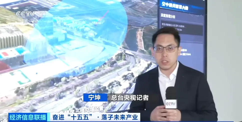 总台央视记者 宁坤:屏幕展示出在低空测试外场里,6G赋能“空中哨兵”能力。远处一台没有报备的无人机刚飞入监管空域,很快地面系统就对它进行了识别,并且做出了一系列后续跟踪和驱离操作。这个过程借助的就是地面基站未来6G具备的通感一体能力。