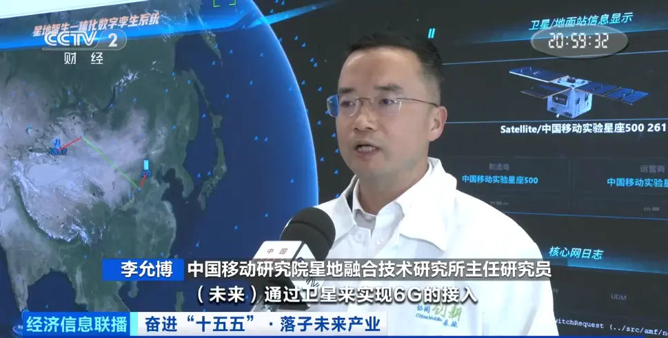 中国移动研究院星地融合技术研究所主任研究员 李允博:我们已经发射两颗卫星作为试验星,未来通过卫星来实现6G的接入,就是要做现有5G网络不能覆盖的盲区,包括海洋、荒漠等场景。