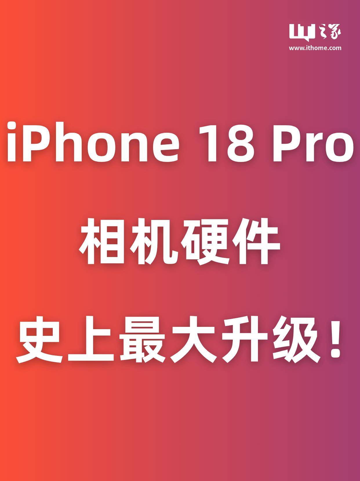 IT之家 4 月 30 日消息,彭博社的马克 · 古尔曼(Mark Gurman)昨日(4 月 29 日)发布博文,指出 2026 年秋季登场的 iPhone 18 Pro 和 iPhone 18 Pro Max 某些相机硬件,有望带来苹果该系列历史上最大规模升级。 古尔曼在介绍 iOS 27 版相机应用 Siri 模式的文章末尾,提到今年秋季登场的 iPhone 18 Pro 和 iPhone 18 Pro Max,虽然并未给出关于传感器、像素或镜头等硬件的详细规格,但表示新机在某些相机硬件方面,将迎来 iPhone 产品线历史上最大规模升级。 IT之家援引博文介绍,基于目前网络上流出的信息,iPhone 18 Pro 和 iPhone 18 Pro Max 的主摄有望加入可变光圈功能。 该功能可让用户更灵活地控制进光量、焦点表现与景深效果,对人像、近景和弱光拍摄都有潜在价值,也更接近专业相机的操作逻辑。 另有传闻称,iPhone 18 Pro 的长焦镜头今年也会采用更大光圈。更大光圈通常有助于提升进光量,改善暗光下的快门速度与画面纯净度。 外媒 9to5Mac 指出,现有传闻本身还不足以支撑“历史上最大相机硬件升级”的说法。可变光圈和长焦大光圈固然重要,但若要匹配这一表述,苹果可能在传感器、镜头结构或计算摄影链路上,部署了更多变化。 MacWorld 则报道称,在今年秋季上线的 iPhone 18 Pro 系列上,,替代 iPhone 17 Pro 系列上的“星宇橙”(Cosmic Orange),成为 Pro 系列的新一代标志性色彩。