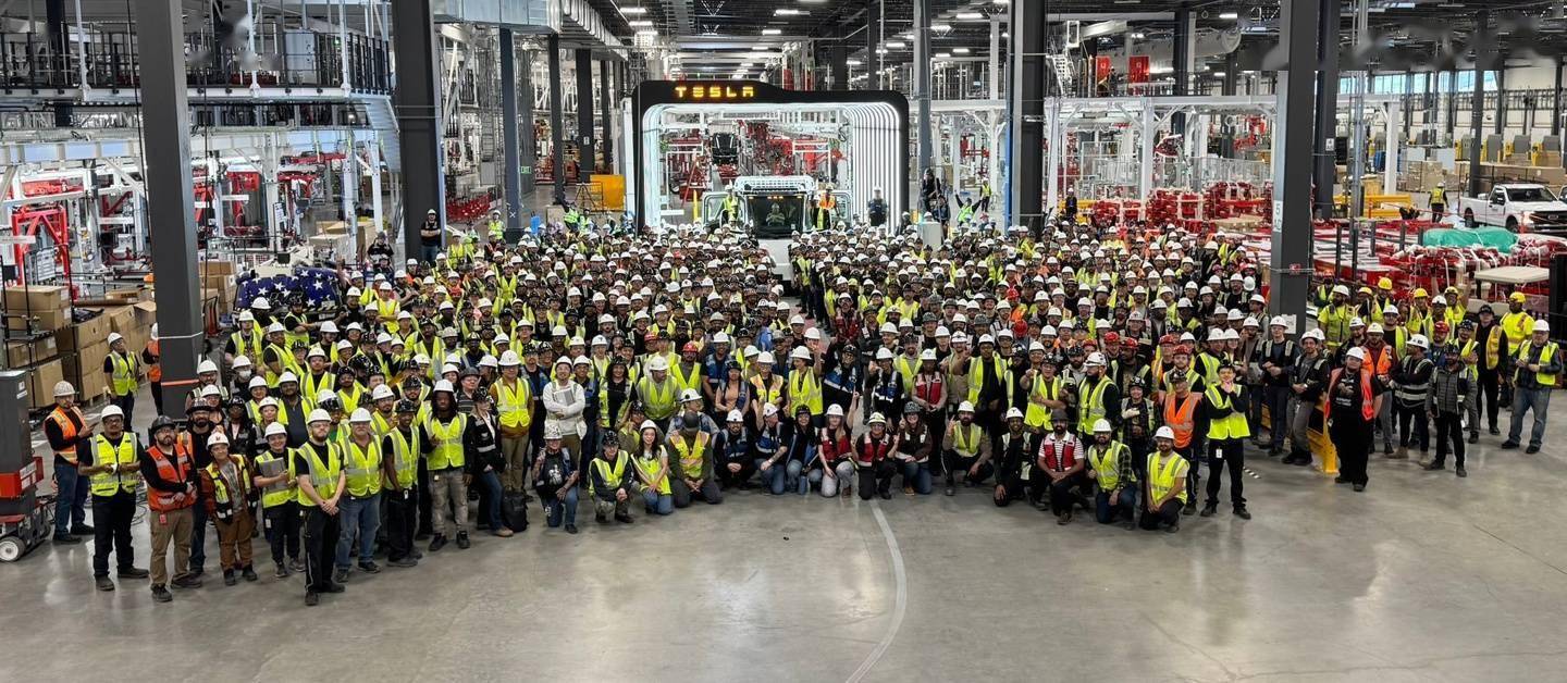 特斯拉 Semi 电动卡车官方今日宣布,特斯拉 Semi 电动卡车首辆量产车下线(First Semi off high volume line)。 这款车早在 2017 年就已经首次亮相,在 2025 年度股东大会上,埃隆・马斯克(Elon Musk)曾向股东明确表示,Semi 量产计划正按既定时间表稳步推进,将于 2026 年正式启动。 除确认量产时间表外,特斯拉还在马斯克的演讲环节中首次公开了这款电动卡车的全新外观设计图。据演示文稿,Semi 已进行较大幅度的重新设计,其造型语言全面向特斯拉当前产品矩阵靠拢。 ▲ 左边为原版,右边为新版 据IT之家此前报道,马斯克在 2026 年一季度财报电话会上提醒,特斯拉 Semi 作为拥有全新供应链的产品,初期产量会非常缓慢,但将在今年年底和明年呈现指数级增长。特斯拉将在今年剩余时间里全力提升所有工厂、所有车型的产能。