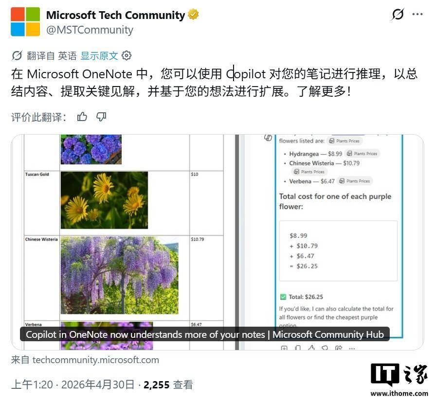 微软昨日(4 月 29 日)发布博文,邀请拥有 Microsoft 365 Copilot 许可用户,在 Windows 11/Windows 10、苹果 macOS / iOS 平台上测试新版 OneNote,应用内置 Copilot AI 突破纯文本限制,新增对表格、图像及标签的理解能力。 微软 OneNote 内置 Copilot 此前仅能处理纯文本内容,而本次更新打破该局限,让 AI 助手识别并理解表格、图像及标签等富格式内容。 微软在博文中还列举本次更新在实际场景下的应用,例如用户在规划旅行时,笔记中常包含行程表格、检查清单及景点照片等混合信息,升级后的 Copilot 可以综合分析这些内容,智能排查行程漏洞或提供优化建议。 技术部署方面,微软采用了服务器端推送模式,用户无需进行软件更新或复杂设置。只要设备版本符合要求,系统将自动启用新功能。IT之家附上相关要求如下: - Windows 版 OneNote:版本 2601(内部版本 19628.20128)及更高版本。