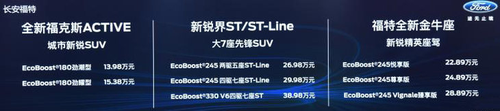 8月16日,行车视线从长安福特官方获悉,新款锐界ST-Line正式上市,其售价区间为26.98-29.98万元,共推出2款车型。新车的外观充满运动风格,相信会受到不少年轻消费者的青睐。动力方面,新款锐界ST-line搭载2.0T发动机。 新款锐界ST-Line曾在今年的上海车展上亮相,其大尺寸中网采用了多边形蜂窝网状设计,全新设计的倒钩形矩阵式LED前大灯以及刀锋式前雾灯,周围加以亮黑色包围套件点缀,使得整个前脸充满运动气息。 新车的侧面有很强的肌肉感,所配备的20英寸轮圈视觉上看起来更加霸气。车身尺寸方面,新车长宽高分别为4878/1925/1734mm,轴距为2850mm。车尾部分,新车采用了全新设计的多边形矩阵式LED尾灯组,融入了较多的时尚元素,辨识度十足。此外,新车还采用了双边双出排气。 内饰方面,新车的内饰设计风格较为简洁,位于中控台中央的纵置12.8英寸中控屏,提升了内饰的科技感,其融入SYNC+智联系统,内含语音控制、智能家居远程互联、车生活服务助手等互联功能。此外,新车还配有旋钮式换挡机构和新样式的仪表盘等。