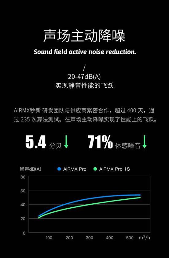 秒新CTO李哲表示,“目前大家接触最多的主动降噪产品就是高端降噪耳机,但相比耳机这种单点声源的处理,开放环境下的主动降噪难度会更大。一般情况下,处理噪音可以通过提供很大的空间实现衰减,但AIRMX Pro 1S 的机身空间有限,在这样小的空间下放入6个高灵敏度麦克风和2个高精度扬声器,不可避免地会挨着很近,声波在这样近的距离里快速传导,只留给了我们 0.00029 秒的时间去分析和处理波形,这非常考验机器的处理能力及核心的降噪算法。但经过 AIRMX 秒新技术团队 400 多天的努力,我们终于攻克了这个难关,给大家呈现了这台静音效果更显著的新风机新品。”