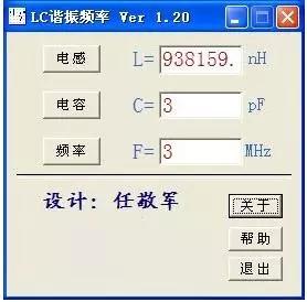 第11款:LC震荡频率计算工具,各栏输入数字后,自动计算频率,直接双击运行,无需安装。具体使用方法:只要输入电感L、电容C、频率F三者任意两者,可按相应按钮计算第三者!