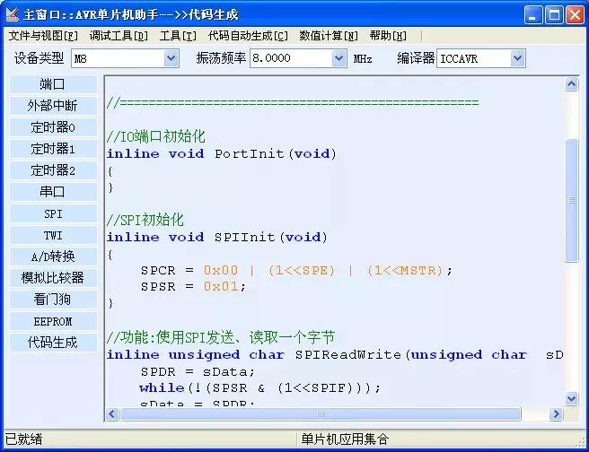 第6款:单片机代码自动生成器,不管是51单片机还是AVR单片机,只要输入你的要求,哪一组IO口高低电平,哪一个定时器延时多少,SPI口如何配置。点一下代码生成,自动输出代码!