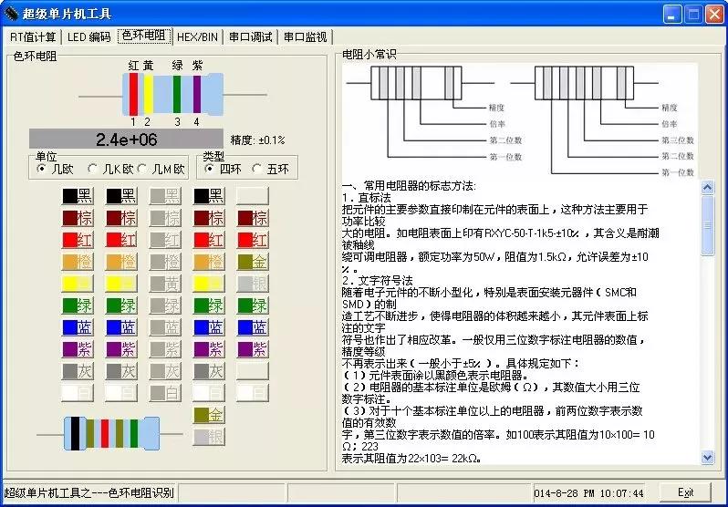 第3款:色环电阻计算器,输入色环电阻的颜色,然后阻值和精度就会自动计算出来!